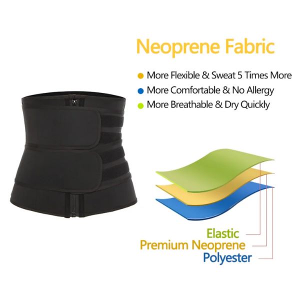 Opremljen je s dvije podesive i robusne čičak trake koje pružaju značajnu potporu dok poboljšavaju kompresiju oko trbuha i struka.